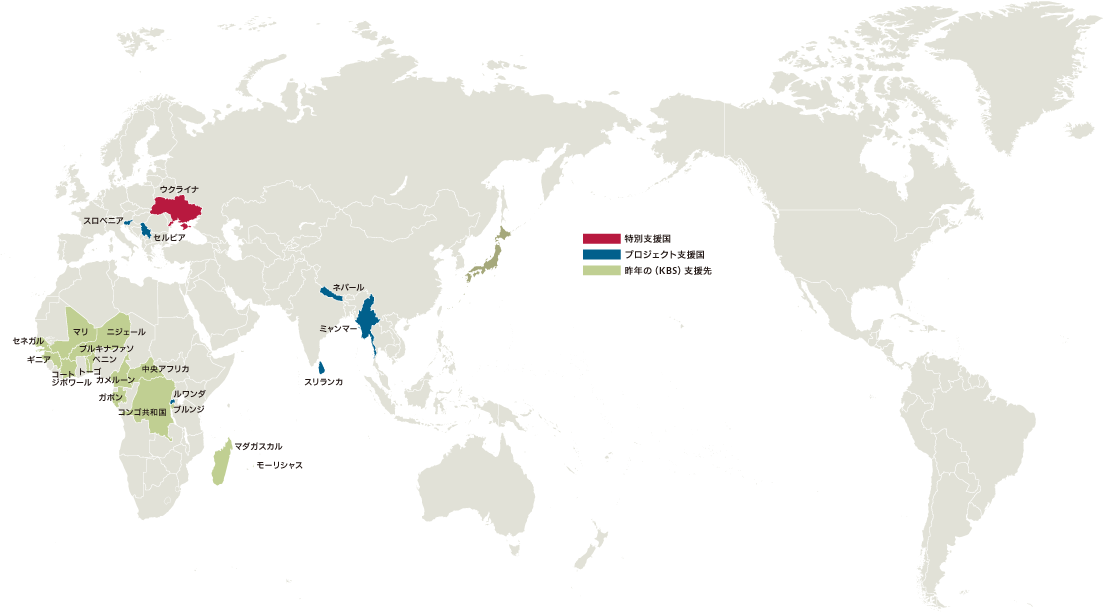 現地聖書協会が運営する聖書普及のプロジェクトに直接支援を行います。2026年度には7地域に総額800万円(KBS:韓国聖書協会によるアフリカ フランス語圏向け聖書製作の支援を含む)と、ウクライナと同国を支援する周辺国の聖書協会に、そして被災された方々への人的・物的支援活動のために、特別支援献金(暫定目標を100万円として年度内に受領する指定募金全額)をお届けする予定です。ご協力をお願い申し上げます。