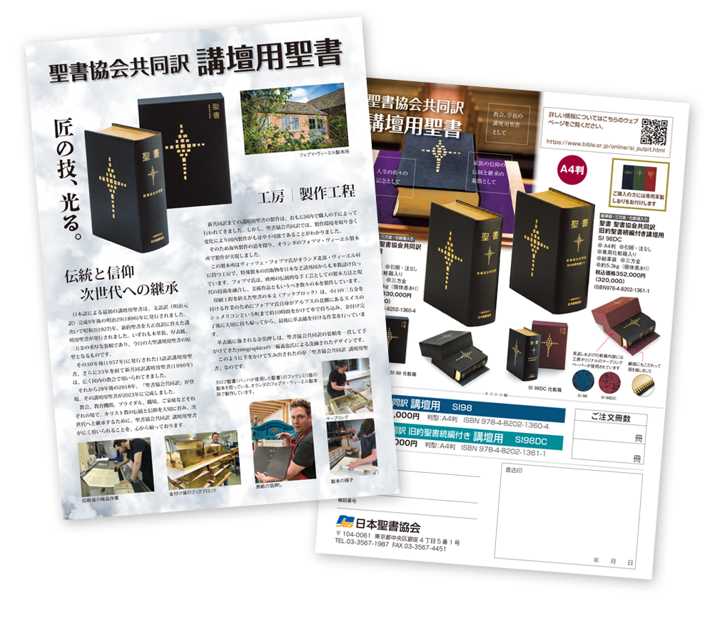 教会、教育機関、ブライダル、職場、ご家庭などそれぞれの場で、キリスト教の伝統と信仰を大切に育み、次世代へと継承するために、聖書協会共同訳 講壇用聖書が広く用いられることを、心から願っております。